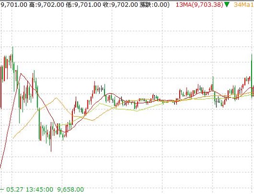 本日2015/05/27(三)今天台指期貨盤開低走平,為高低差97點的盤整盤,開在9607收於9661,漲幅2點,早盤期指跳空開低52點後,持續拉90餘點至9698,尾盤殺30餘點於9665盤整至收,總成交量縮至10.9萬口,短線整理,現貨成交量擴至1008億,逆價差擴至32點;今天期貨指數價平量縮,現貨則價平量增,今天期指如昨日穿過周、季線,觸季、月線有壓力,連2日於周線與季線區間震盪,屬於短線偏空整理;昨日外資期貨淨空單維持9千餘口,短線偏空;
