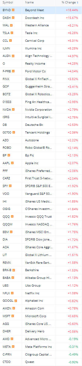 $BYND 超越肉類上漲2.5% 2年期美債殖利率升破5% 標普止步連8紅(投組YTD +24.3%)