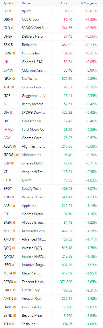 在川普言論影響之前,美股午盤後普遍上漲,但微軟 (MSFT-US) 和聯合包裹服務公司 (UPS-US)等幾檔大型股票在公佈業績後大幅下跌,令 S&P 500 指數承壓。